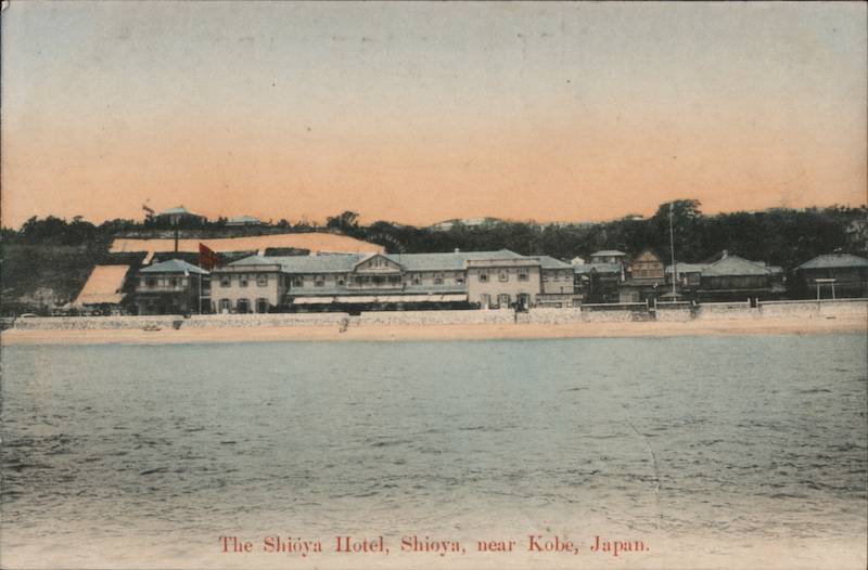 Front: SEASIDE GIG The Shioya Hotel, Shioya, near Kobe, Japan. Back: THE SHIOYA HOTEL, SHIOYA, NEAR KOBE, JAPAN. Japan's best summer resort. Half an hour from Kobe. Overlooking the Inland Sea, Boating, Bathing, Fishing, Tennis, etc.