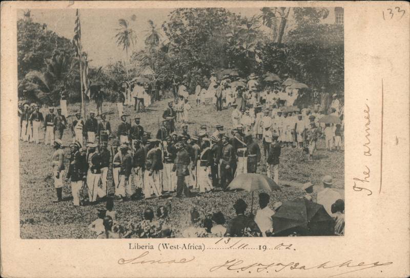 Front: RAZLO Liberia (West-Africa) همنرو //// .19..27. armee 133 بهما Back: 9-10 80, mee HT 7- Union pasta کے - Ara ہر **DE( 9-10 ہے CISE Carte postale. LIBERIA. Diverselle. sel.... on this side. با یک ہے A11 Seherden hussenstrast. سیلمارے