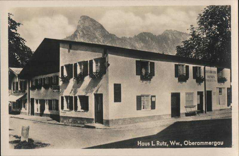 Front: WOO Lud LASTGEWERBE ANDENKEN DWIG RUTZ WW Haus L. Rutz, Ww., Oberammergau Back: Kunstphotogr. C. Zwickl, Garmisch-Partenkirchen graphie Photo- Echte