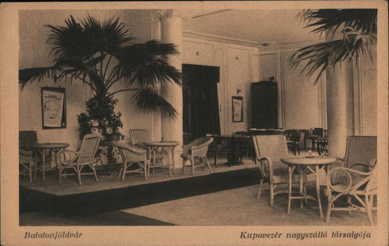 Front: UJSAG Balatonföldvár 11 Kupavezér nagyszálló társalgója Back: Tolnai Müintézet, Budapest, Áldor Dezső felvétele.