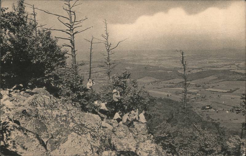 Hawk Mountain Sanctuary, P. O. Route 2 Kempton, Pa. View Northwards from the Sanctuary's sum- mit. The sheer wall of the mountain drops a thousand feet. Canton, Pa. "WHITMAN'S PHOTOTYPES THIS SIDE FOR ADDRESS