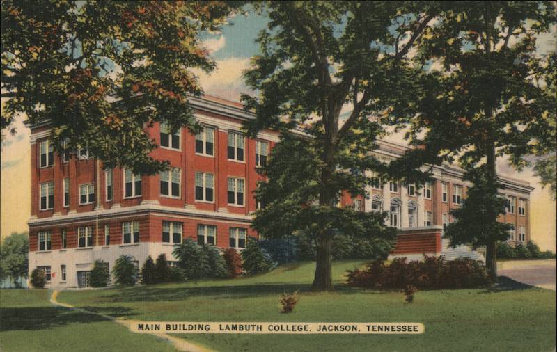 Front: MAIN BUILDING. LAMBUTH COLLEGE.JACKSON. TENNESSEE 品 Back: PUBLISHED BY CARROLL PAPER CO., JACKSON, TENN. 15344 A COLOURPICTURE PUBLICATION, CAMBRIDGE, MASS., U. S. A. HERE