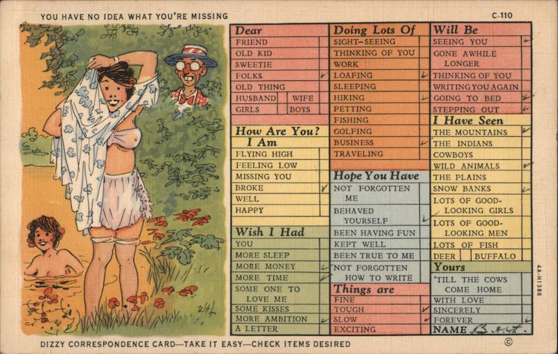 DIZZY CORRESPONDENCE CARD-TAKE IT EASY-CHECK ITEMS DESIRED