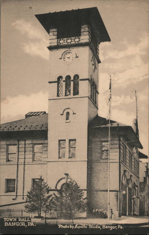 Front: TOWN HALL BANGOR, PA. EK TH FE Ma Photo by Apollo Studio, Bangor, Pa. Back: 1- Made by THE TECRAFT COMPANY, Tenafly. N. J. THIS SIDE FOR ADDRESS