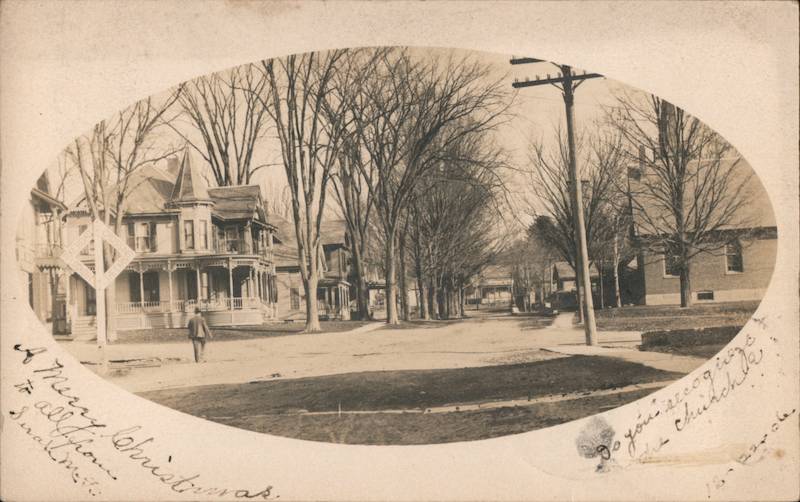 Front: to durau Mesi all prome RAILROAD LOOKOUT Merry Christmas. secognize chürchta 303-8/ Back: POST CARUSH DEC 22 1905 N.Y SERIES 1902 UNITED STATES OF MERENG 1706 FRANKLIN 1790 Mise Jussie Mr Applemians M. гал не Round Lake, ny.