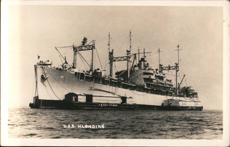 Front: 22 WEE 2015 U.S. NAVY YF-653 U.S.S. KLONDIKE 28MYY YF-845 Back: AD 22 KLONDIKE во DO TENDER wwz 4+