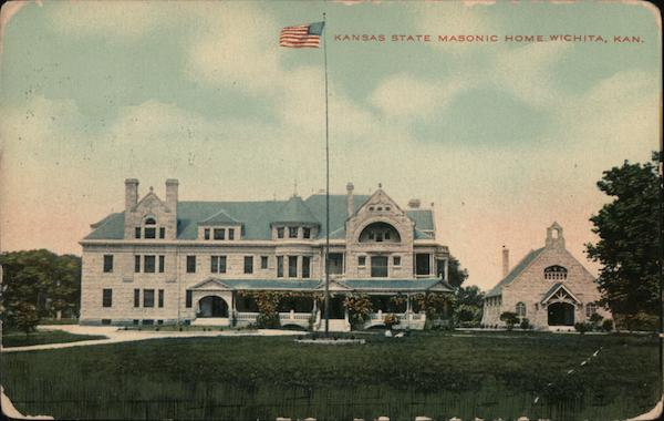 Front: KANSAS STATE MASONIC HOME, WICHITA, KAN. Back: Kj NEW YORK. 25 PM KAN Post Cons 1910 Mis M. A. Ceppale Winfield Kan 703 Millington SK. ONEC EXTY