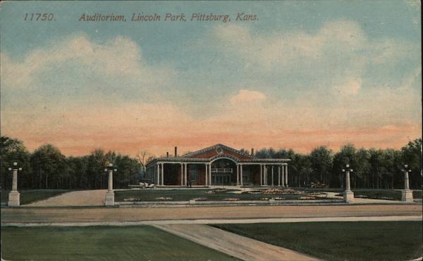 Front: 11750. Auditorium, Lincoln Park, Pittsburg, Kans. Back: ACME Pub. by The Acmegraph Co., Chicago, pe ܡܠܝܘ STAMPHERE Two CENTS