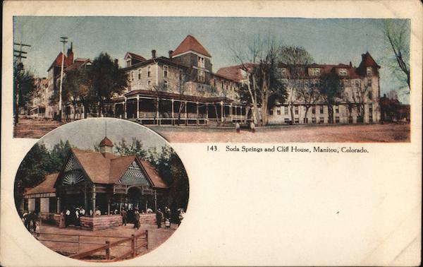 Front: Bluen這 中國HA 143. Soda Springs and Cliff House, Manitou, Colorado. Back: GK KAN This Space Can Be Used for a Written Message. TWO CENTS.