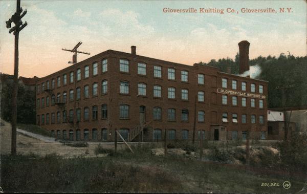 Front: DELL DRORAGEORG BROGEAGAGA FERRAG Gloversville Knitting Co., Gloversville, N.Y. 11 GLOVERSVILLE KNITTING CO. 201,956. (J.V) Back: 35 The Valentine & Sons' Publishing Co., Ltd., New York SOUVENIR POST GARD