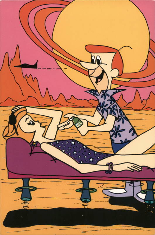 Front: OIL 201 00 Back: "Power Tanning (On A Saturn Moon)" ©1987 Hanna-Barbera Productions, Inc. Designs by Antonsen/Blakeley J14 LUNA BAY Luna Bay Productions, Long Beach, California Americass Space- Ag geFamily
