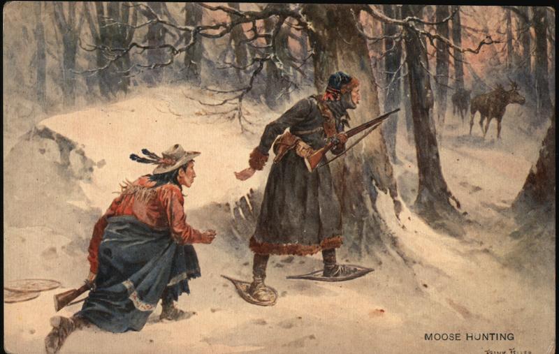 Front: MOOSE HUNTING TRINK. TELLER Back: Valentine & Sons Publishing Co., Ltd New York Valentine's ARTOTYPE Series. .. rinted in Great Britain Booo SOUVENIR POST GARD 0. 3