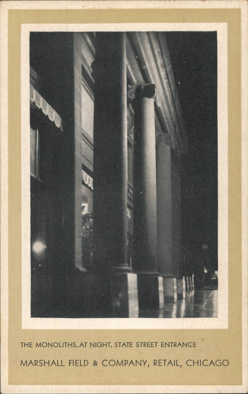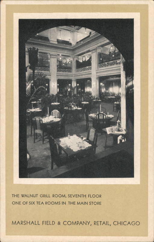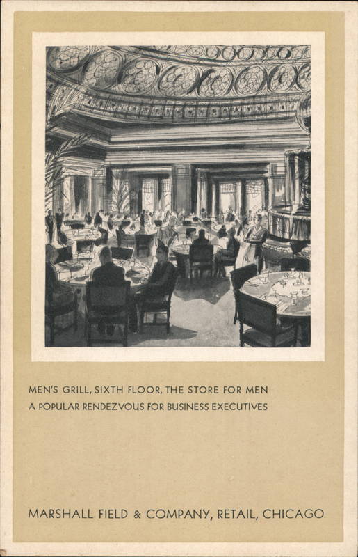 Front: WEL SEX OO COCONCUROROCZYWANE MEN'S GRILL, SIXTH FLOOR, THE STORE FOR MEN A POPULAR RENDEZVOUS FOR BUSINESS EXECUTIVES MARSHALL FIELD & COMPANY, RETAIL, CHICAGO Back: XXI IMA MAIM 53334 X XI XU / THIS SPACE FOR ADDRESS ONLY