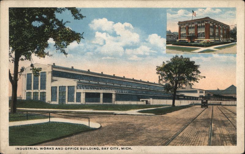 Front: INDUSTRIAL WORKS AND OFFICE BUILDING, BAY CITY, MICH. Back: PUBLISHED BY HARRY H. HAMM, ERIE, PA. H.H Hamm Erie, Pa A-64213 AND CANADA. IS