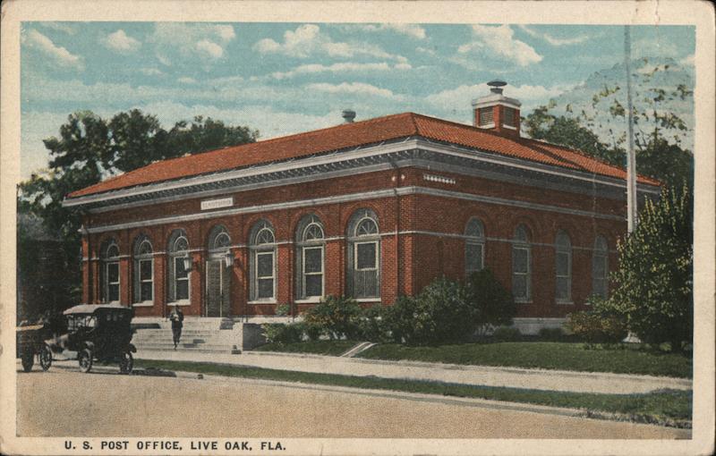 Front: estra 006680 U.S. POST OFFICE, LIVE OAK, FLA. erhä Back: 56277-PUB. BY ASHEVILLE POST CARD CO., ASHEVILLE, N. C. al PLACE