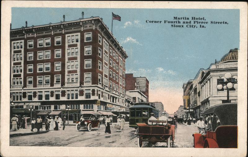 Front: 66 OOO 36 NATIONAL BANK CLA SAVE SA Martin Hotel, Corner Fourth and Pierce Streets, Sioux City, Ia. 34.6 Back: Pub. by Hornick, More & Porterfield, Sioux City, Ia. No. 9308 Co