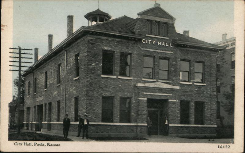 Front: City Hall, Paola, Kansas CITY HALL 16123 16122 Back: se PHOTOETTE C. U. WILLIAMS BLOOMINGTON ILLINOIS