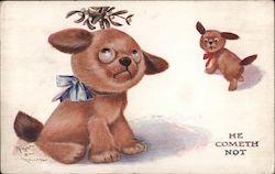 Christmas Greetings Puppy Dog with Mistletoe an...