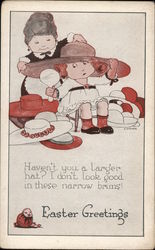 Woman in Blue Hat Looking in Mirror, Easter Mor...