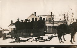 Winter Scene - Horse-drawn sleigh, group of peo...
