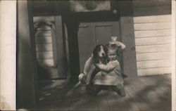 Two Boys with Dog, Real Photo Postcard