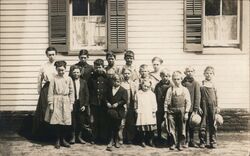 Group of Children in Front of Schoolhouse