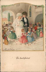 Children Dressed as Bride and Groom Leaving Church