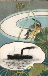 N.Y.K. S.S. "Kumano Maru" Steamship with Floral...