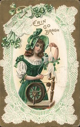 Irish Girl with Pig, Erin Go Bragh, Embossed, G...