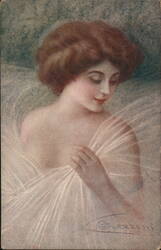Woman in Profile with Rose and 'AMBCSV' Letters...