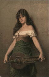 Woman in Purple Gown and Large Hat, Art Nouveau...