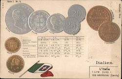 Embossed Display of Italian Lira and Centesimi ...