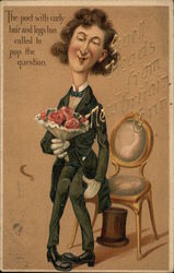 Man in cavalier dress proposes marriage to lady...