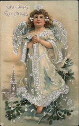 Christmas Greetings, Angels in Horseshoe with M...