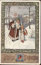 Santa Claus with Torch Leading Angel Children, ...