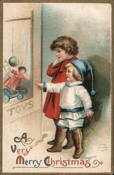 Santa Claus with Elf & Toys, Christmas Greetings
