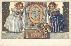Santa Claus with Two Young Girls Kneeling, Chri...