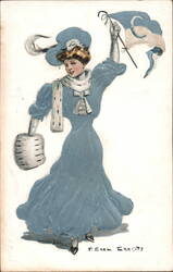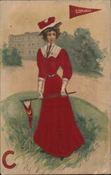 Woman in Bathing Suit with Fabric Skirt, "Local...