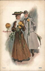 French Language of Flowers with Woman and Flora...