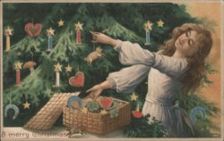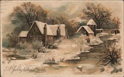 A Merry Xmas, Children Playing in Snow, Holly W...