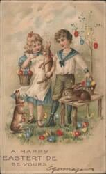 Happy Eastertide, Bunnies and Chicks on Decorat...