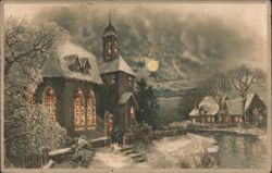 Kind Wishes for Christmas, Snowy Night Scene wi...