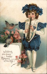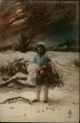 Boy with Flowers & Umbrella, Vintage Czech Post...