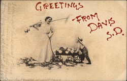 Woman & Child Watering Plants, Toy Trees & Pig ...
