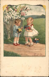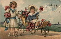Boy and Girl with Rose Bouquets - Boy in Carriage