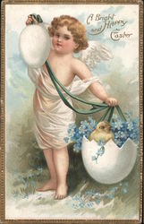 Cherub with Chicks on Easter Egg, Vintage Postcard