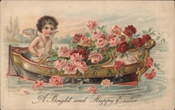 Cherubic Angel in Rose-Filled Boat, Easter Gree...