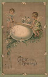 Cherubs with Large Easter Egg and Snowdrops, Ea...