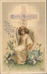 Easter Angel with Blank Banner, Lily Cross, Vin...