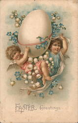 Easter Angels with Giant Egg, Flowers, Vintage ...